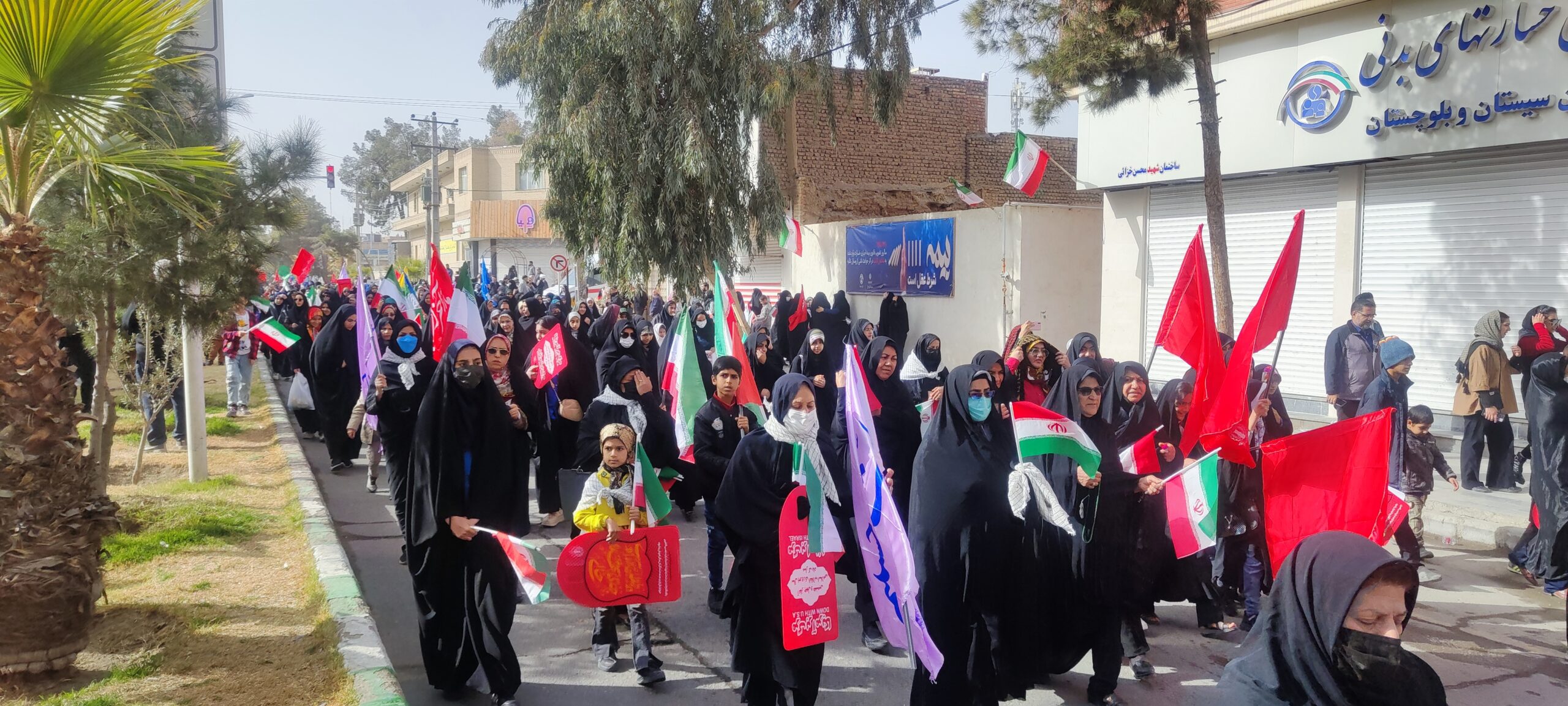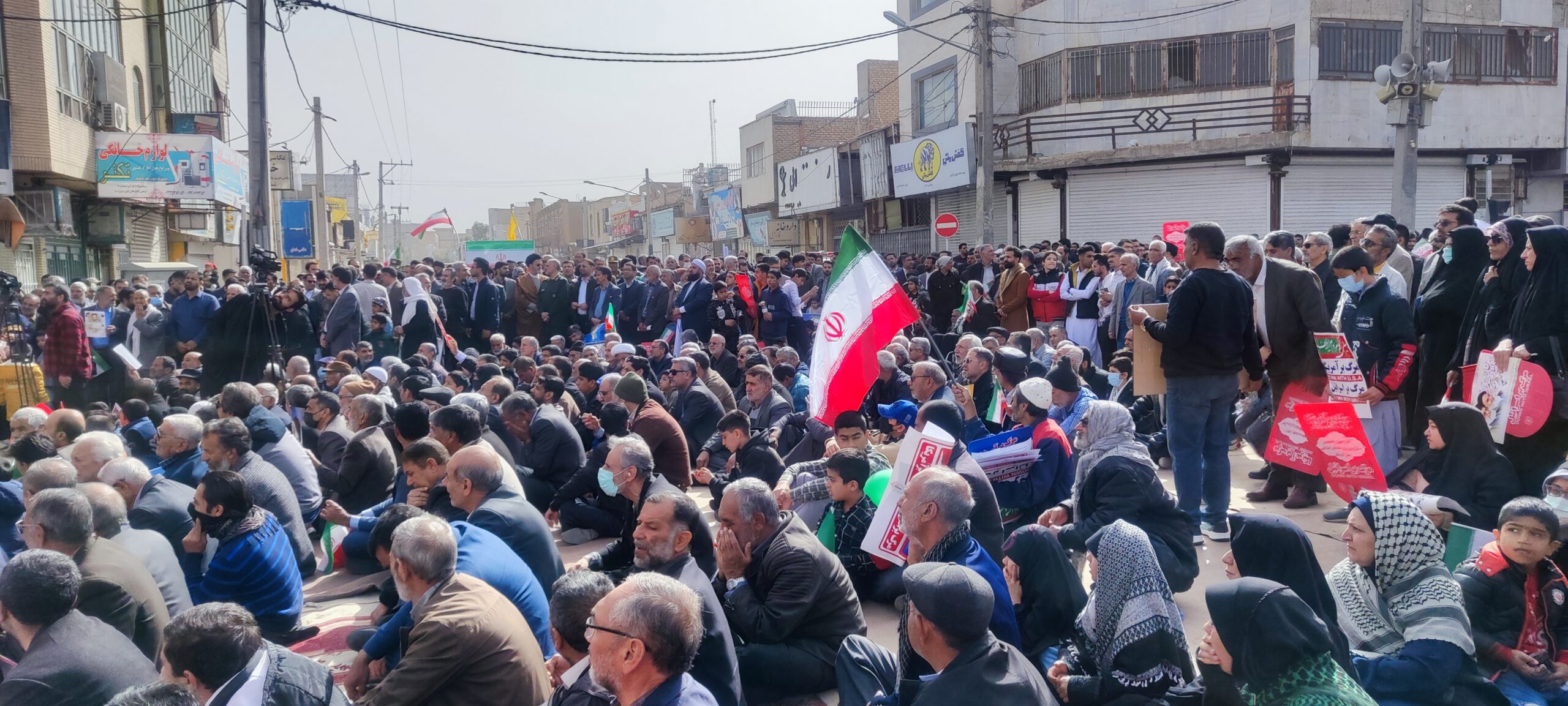 خیابانهای اصلی شهرها مملو از جمعیتی بود که با در دست داشتن پرچمهای سهرنگ جمهوری اسلامی ایران و سر دادن شعارهای “مرگ بر آمریکا” و “مرگ بر اسرائیل”، بر وفاداری خود به انقلاب اسلامی تأکید کردند.